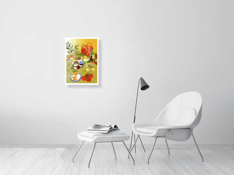 High quality Giclée art print, depicting a vibrant dinner still life. Printed using archival inks which are fade resistant to create rich vivid colours that are made to last. Perfect as a stand alone statement print or as part of a collection for a feature wall.