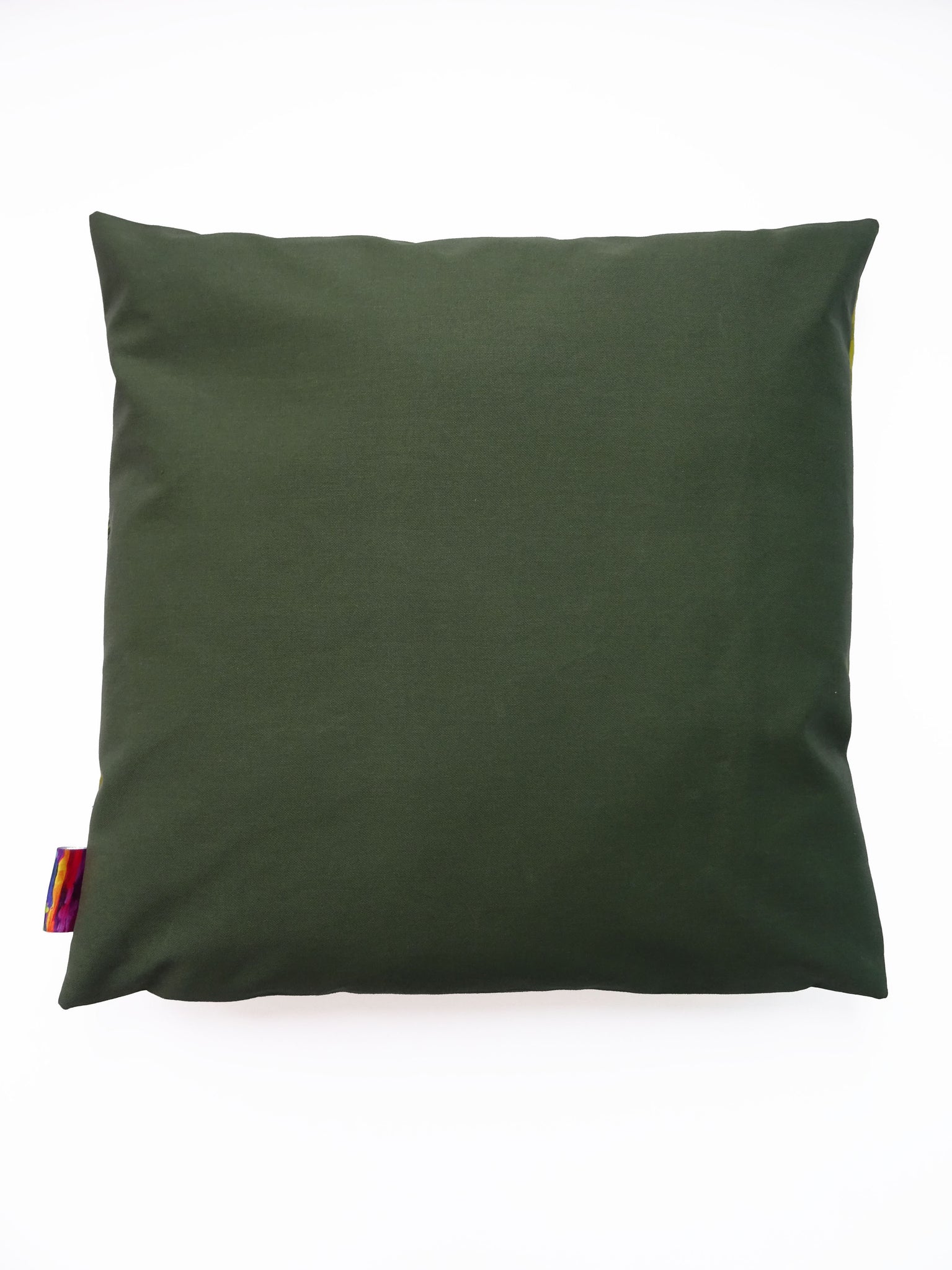 Has an envelope sleeve opening at the back made from a complimentary olive green cotton fabric so you can easily remove the cover for hand washing.